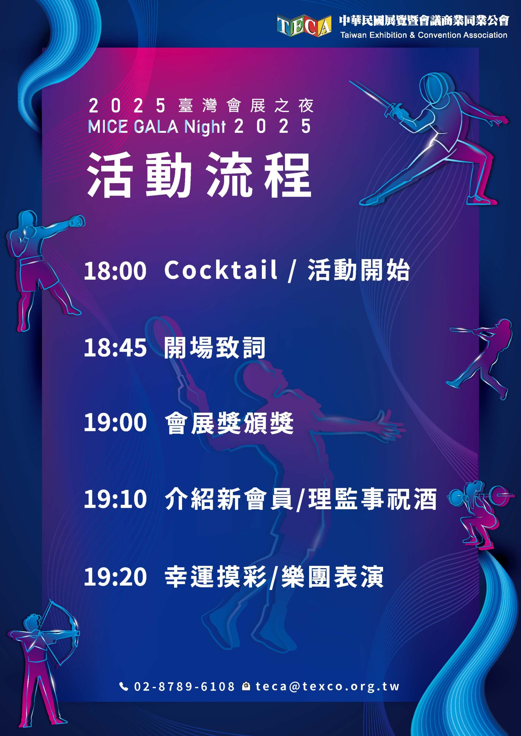 認桌 / 贊助 認桌 / 贊助 2025臺灣會展之夜 期待已久的臺灣會展之夜即將到來!從今年的巴黎奧運到棒球世界12強賽,臺灣隊的傑出表現令人驕傲!為響應運動熱潮,我們將會展與運動精神結合,期待能呈現一場充滿活力的年度盛會!敬邀撥冗赴宴並踴躍襄贊,共享這份榮耀與熱情! 活動資訊 活動名稱:2025臺灣會展之夜 MICE GALA NIGHT 2025活動日期:2025年1月8日(三)活動時間:18:00 Cocktail,18:30 晚會開始活動地點:台北君悅酒店3樓 凱悅聽 (台北市信義區松壽路2號) 贊助說明 贊助流程 認桌贊助:1. 預計席開50桌,每桌10席。2. 每桌酒席費用為新臺幣21,000元(含稅)。3. 由本會開立114年贊助收據或由台北君悅酒店開立發票予各贊助單位。4. 每贊助一桌,贊助單位可自行運用5席(不含會員代表本人);另餘每桌5席,由本會統一運用於邀請全體會員代表及貴賓。5. 即日起受理認桌贊助,請於本(113)年12月18日(三)前線上填覆。 (1) 填寫贊助報名表請填寫公司基本資料及選擇贊助項目。提交後,系統將發送一封確認郵件,內附匯款資訊。 (2) 匯款資訊如下戶名:中華民國展覽暨會議商業同業公會銀行:兆豐國際商業銀行 東內湖分行銀行代碼:017帳號:067-09-01330-0繳款後請於繳費通知書中填覆帳號後五碼並回傳至本會Fax:02-8789-6518;teca@texco.org.tw 贊助資訊 2025臺灣會展之夜 (正式用)公司名稱Email聯絡人姓名連絡電話分機Ⅰ 認桌贊助 桌次(贊助一桌,可攜伴5位貴賓一同參加) 1 桌 2 桌 3 桌 其他 (由專人為您服務😉) 謝謝,暫不考慮。🤗憑證開立 本會收據 台北君悅酒店發票Ⅱ 活動贊助(摸彩活動) 金額(新臺幣:元) 搶錢中,再等等……💸 5,000元 10,000元 20,000元 30,000元註:如有認桌並選擇收據者,可合併現金贊助開立收據Ⅲ 其他贊助(摸彩活動) 無 請詳述請詳述贊助項目預估金額 (新臺幣:元)總計金額回上一頁,修改資料確認填寫內容請確認填寫資料內容 公司名稱: E-mail: 聯絡人姓名: 分機: Ⅰ 認桌贊助: 桌 (每桌$21,000) 憑證開立方式: Ⅱ 活動贊助(摸彩活動): 元整 Ⅲ 其他贊助(摸彩活動): Ⅰ 認桌贊助+Ⅱ 活動贊助總金額:$ 元整 回上一頁,修改資料 提交,確認信已寄出 110202 台北市信義區信義路五段五號2樓2C20室Tel : +886-2-8789-6108Fax: +886-2-8789-6518Email: teca@texco.org.tw 本系統由漢品資訊科技贊助 | 報名報到系統整合服務